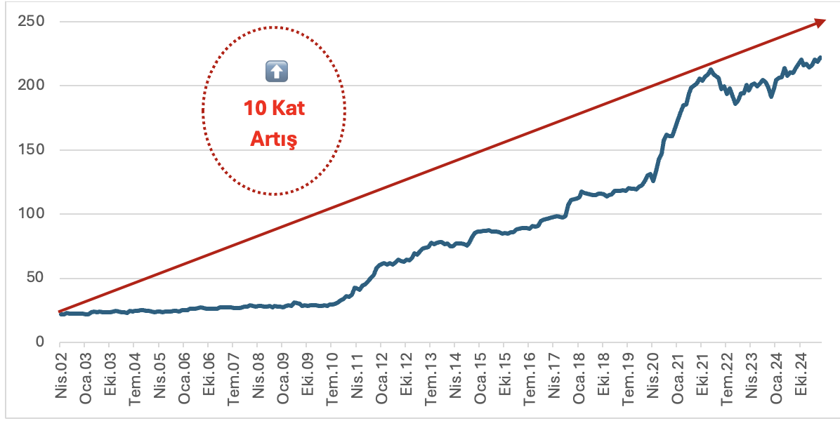 Grafik 2: İsrail Merkez Bankası Döviz Rezervleri, Nisan 2002-Ekim 2024, Milyar Dolar
