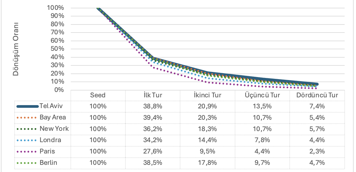 Tel Aviv’in, küresel ölçekte en fazla risk sermayesi çeken merkezlerden biri olması dikkat çekicidir. Ancak bundan daha önemlisi, bu şehirdeki girişimlerin yatırım turları arasında ilerleyebilme oranlarının yüksek olmasıdır. Gelişmiş ve büyük ekonomilerde, yerleşik risk sermayesi kültürü sayesinde girişimlerin yatırımcı desteği bulması ve ayakta kalması beklenen bir durumdur. Buna karşılık, İsrail ekonomisinin görece küçük ölçeği göz önüne alındığında Tel Aviv’in bu kadar güçlü bir performans sergilemesi özellikle kayda değerdir. Bu durum da akıllara İsrail’in küresel varlık yönetimi şirketleri ve çok uluslu şirketlerle kurduğu ilişkiler yumağının incelenmesi gereken bir mesele olduğu konusunu getirir.
