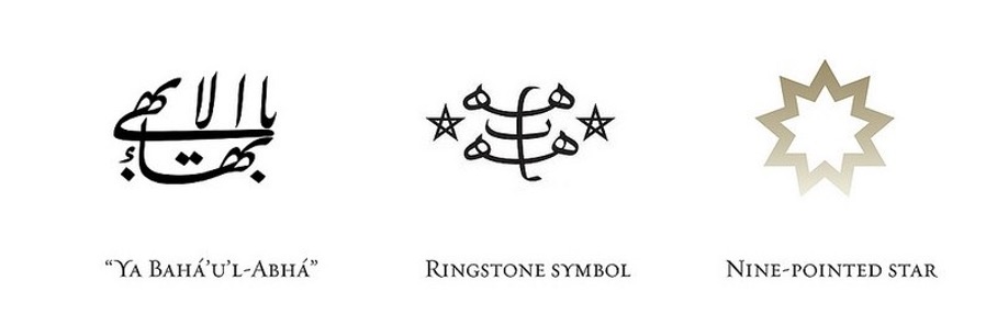 Şekil 1: Bahailik İnancının Yaygın Olarak Kullanılan Sembolleri: En Büyük (Yüce) İsim, Beş Köşeli Yıldız ve Dokuz Köşeli Yıldız