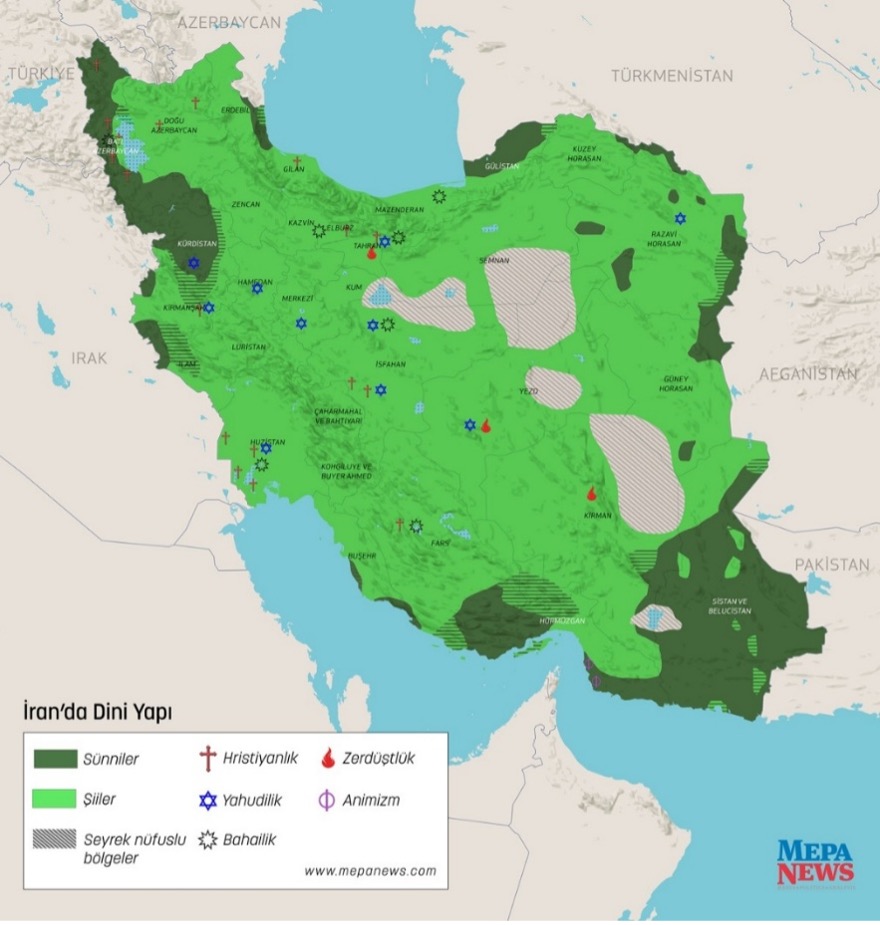 Harita 1: İran’da Dini ve Mezhebi Yapı Haritası