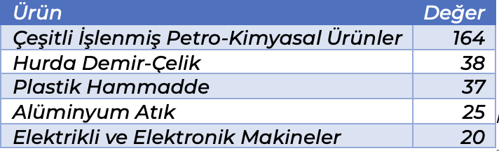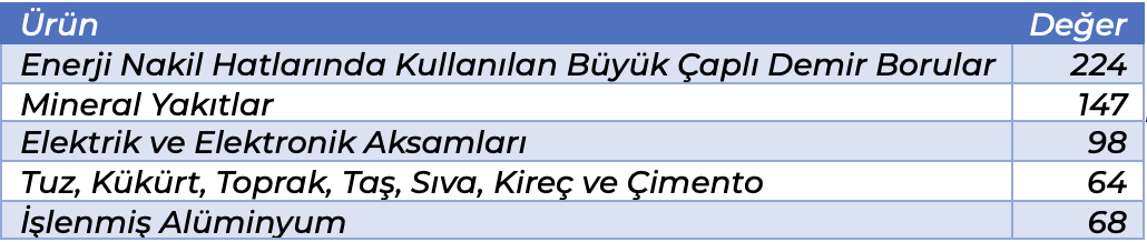 Tablo 2: 2024 Yılı Yunanistan’dan İsrail’e Değer Bazında En Çok İhraç Edilen İlk 5 Ürün (Milyon Dolar)
