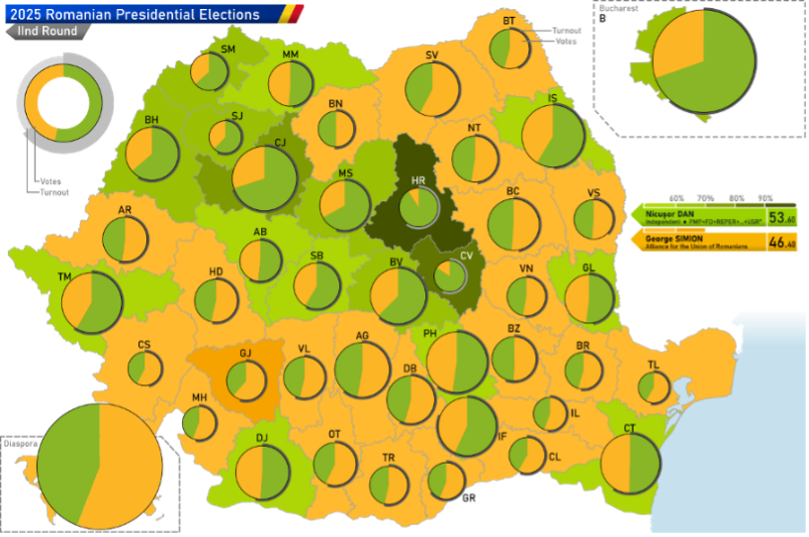 Anschließend wurde die Wahl annulliert und Georgescu wurde die Kandidatur untersagt. Bei der im Mai 2025 wiederholten Wahl erhielt die andere Kandidatin, Lasconi, lediglich überraschende 2,7 % der Stimmen und schaffte es nicht in die Stichwahl. In der zweiten Runde gewann schließlich der europafreundliche Bürgermeister von Bukarest, Dan. In Dans Wahlkampagne standen seine Loyalität gegenüber Europa und sein Vertrauen in die NATO im Vordergrund.