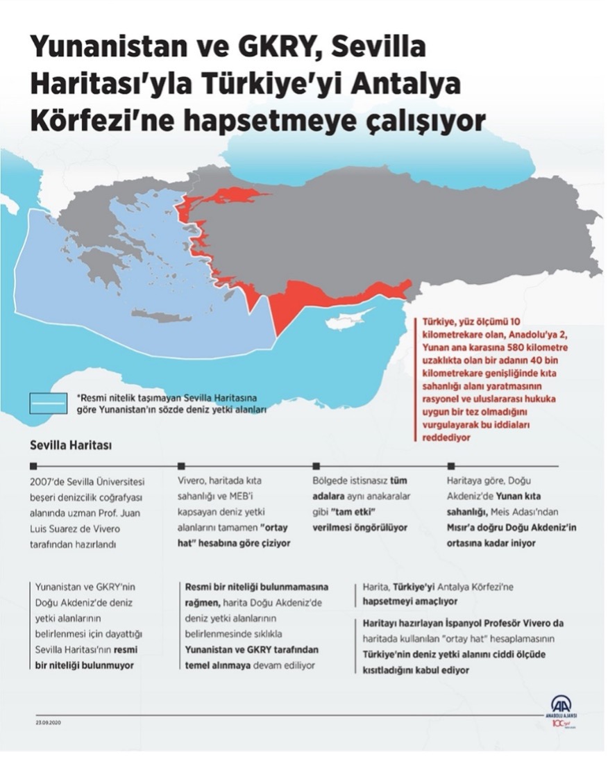 Essentially conceptualized under the “Blue Homeland” framework, this strategy aims to protect Türkiye’s interests within its territorial waters and beyond, particularly in the Eastern Mediterranean. It has been observed that Greece, which is seeking to expand its continental shelf in the Aegean Sea’s “Twelve Islands” region, has also embarked on an effort to encircle Türkiye in the Mediterranean. This project, known as the “Sevilla Map,” is based on the recognition of continental shelf rights for the Greek-controlled islands of Rhodes, Meis, Çoban and Kaşot off Türkiye’s southwestern coast. Fundamentally, the history of the Blue Homeland concept—which seeks to protect Türkiye’s rights regarding territorial waters and undersea resources in the three seas surrounding it—dates back further. However, it can be said that this term was officially adopted as state policy following the 2019 agreement between Türkiye and Libya regarding maritime jurisdiction areas.[2] In this context, Türkiye has been pursuing a policy since 2019 that is fully aware of the Israel-Greece axis developing against it in the region, both legally, diplomatically, and economically.